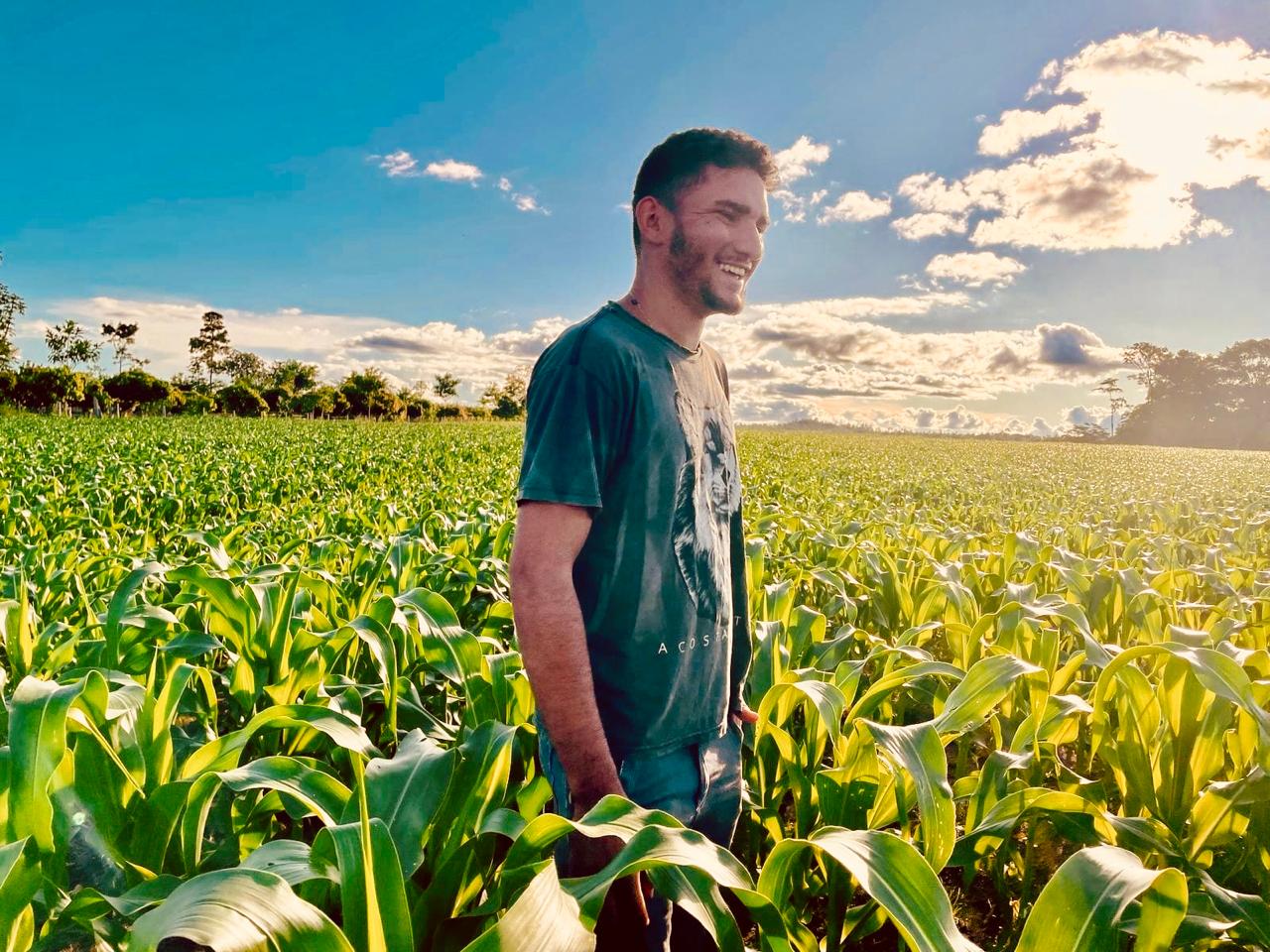 O jovem Kailan Silva Simplício, de 21 anos, observa satisfeito a plantação de milho, que ocupa mais de 7 hectares e será destinada tanto para grãos quanto para silagem – um alimento para animais, especialmente bovinos, obtido por meio da fermentação anaeróbica de forragens. Esse processo de conservação permite armazenar e fornecer alimento de qualidade, mesmo em épocas de escassez de pastagem.