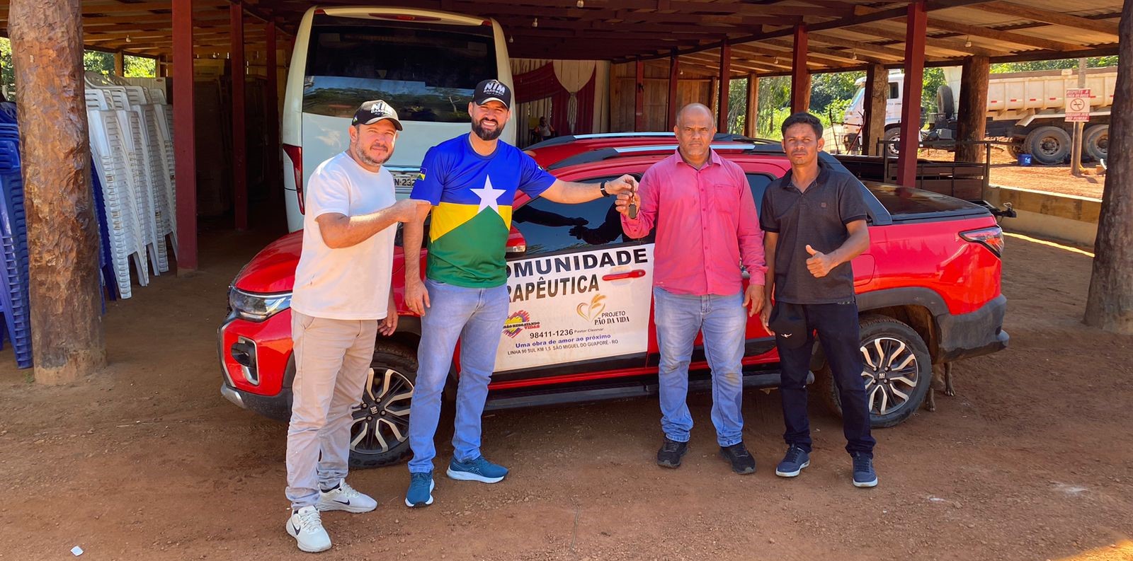 Atendendo a uma importante demanda da Comunidade Terapêutica Unidos Resgatando Vidas, o deputado estadual Nim Barroso realizou, na última semana, a entrega de um veículo que auxiliará nas atividades da instituição, localizada em São Miguel do Guaporé (RO). A entidade é liderada pelo pastor Cleomar e desenvolve um trabalho essencial no acolhimento e recuperação de dependentes químicos.