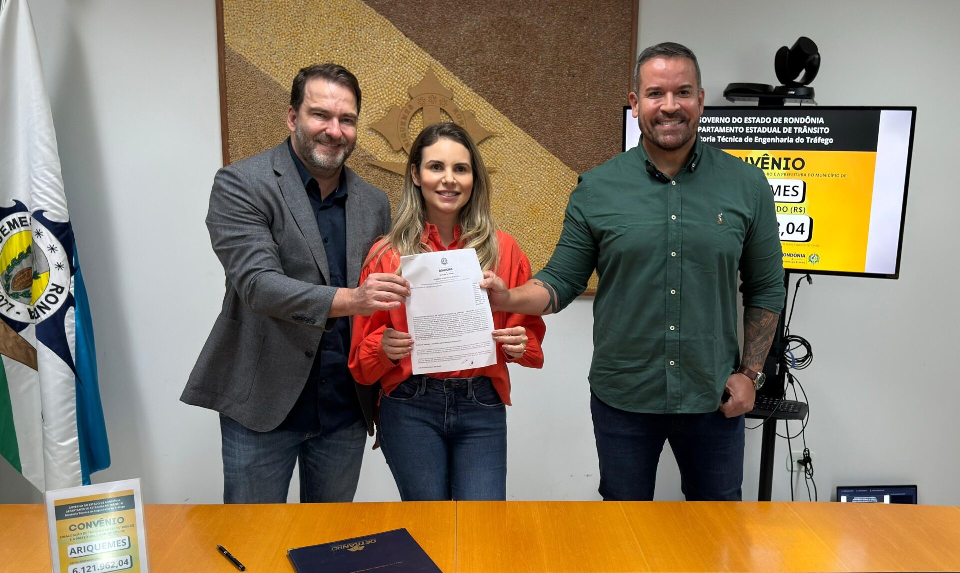 O diretor-geral do Detran-RO, Sandro Rocha, destacou a importância da união entre os poderes para promover melhorias concretas à população. “Esse convênio é resultado de uma parceria sólida entre o Governo do Estado, a Prefeitura de Ariquemes e a Assembleia Legislativa. Trabalhando juntos conseguimos levar mais segurança viária, qualidade de vida e respeito à população. Ariquemes ganha muito com essa iniciativa”, afirmou.
